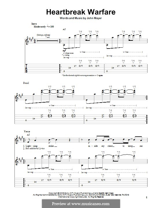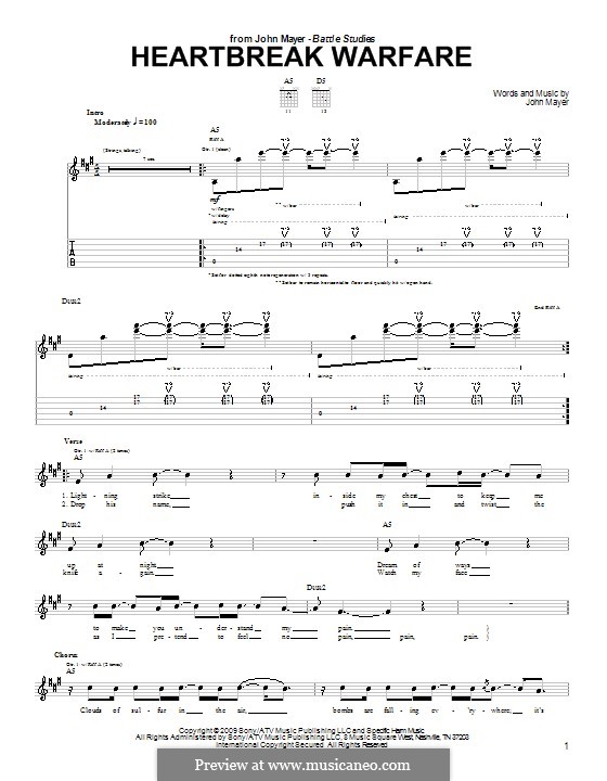 Mayer - Heartbreak Warfare sheet music for guitar solo
