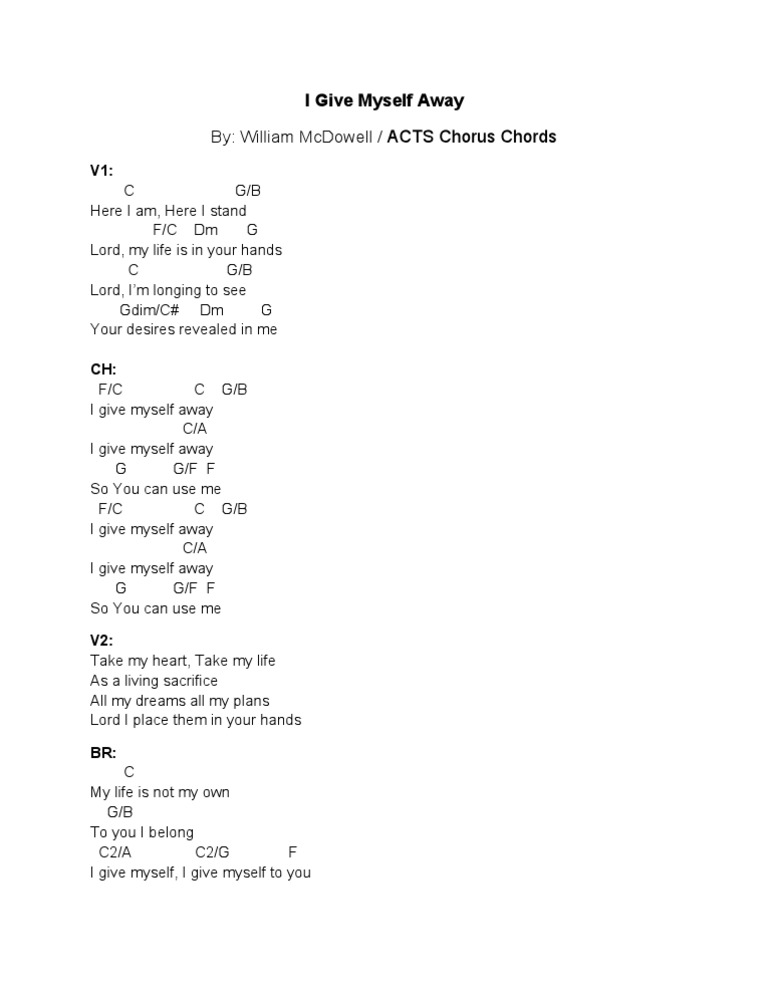 I Give Myself Away Chords