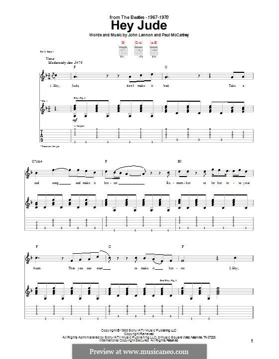 The Beatles "Hey Jude" Guitar Tab in E Major - Download
