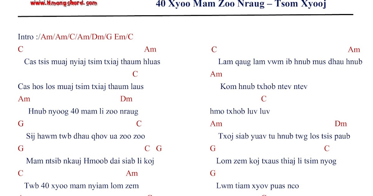 Hmong Chord: 40 Xyoo Mam Zoo Nraug - Tsom Xyooj [Lyrics