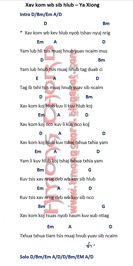 Hmong Chord: Xav Kom Wb Sib Hlub - Ya Xiong [Lyrics