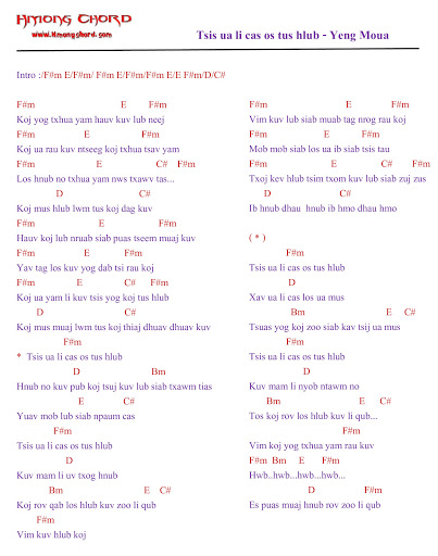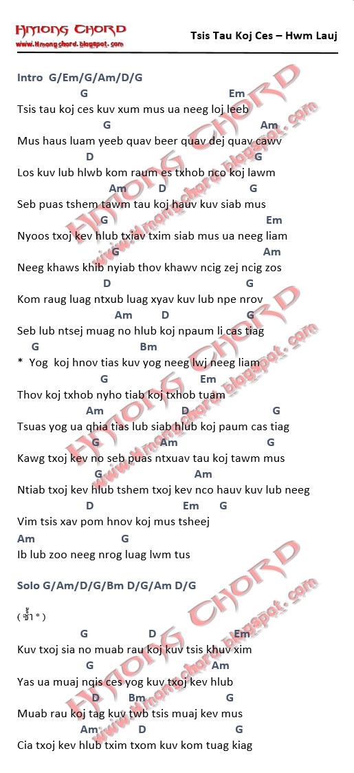 Hmong Chord: Tsis Tau Koj Ces - Hwm Lauj [Lyrics & Guitar
