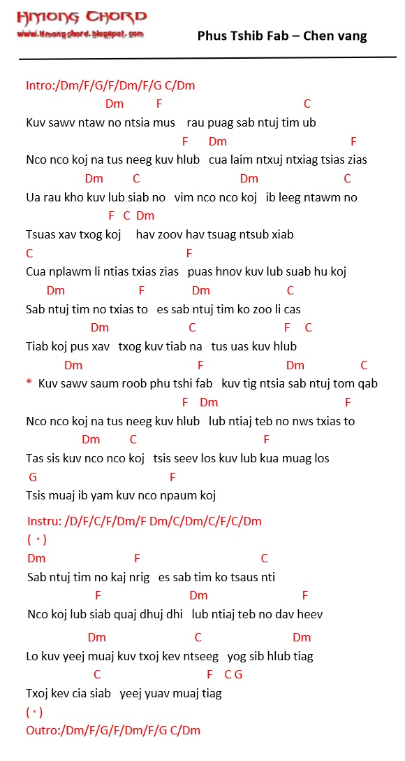 Hmong Chord: Phus Tshib Fab – Chen Vang [Lyrics & Guitar