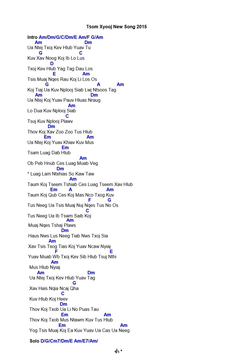 Hmong Chord: Tsom Xyooj New Song 2015 [Lyrics & Guitar Chord]