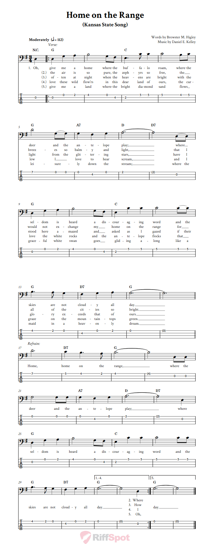 Home on the Range: Bass Guitar Tab and Sheet Music