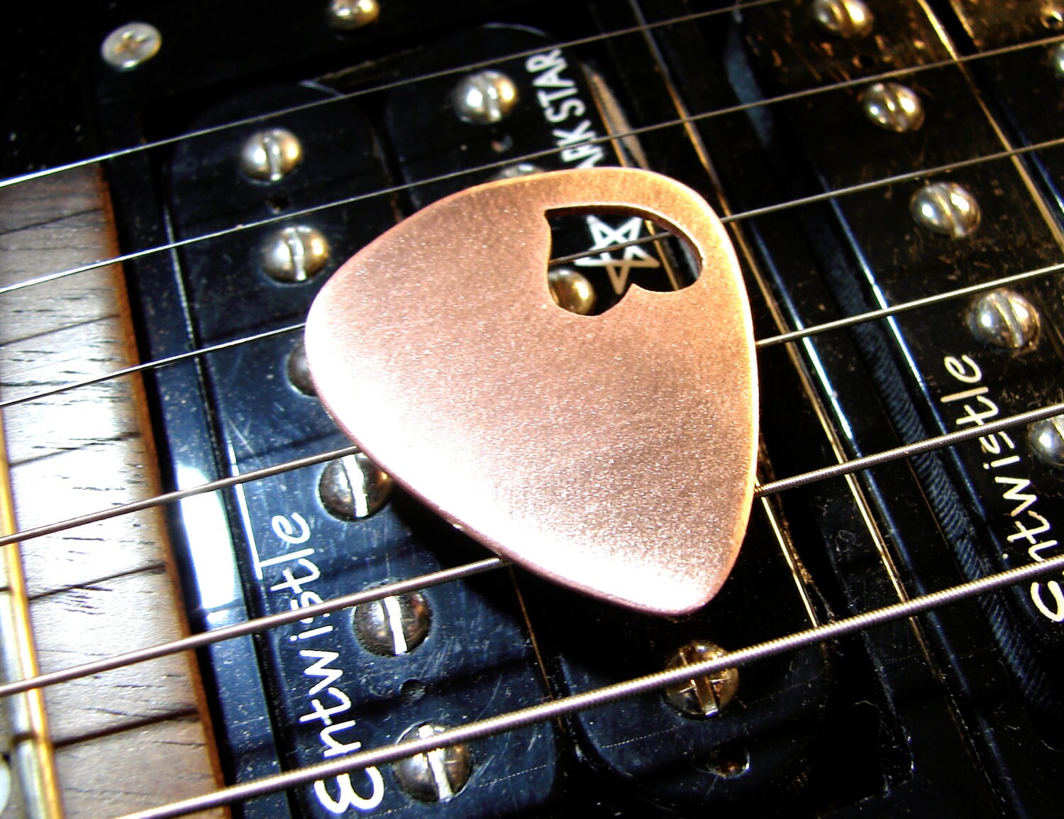 Love Guitar Pick in Copper with Heart Cut Out and Space to