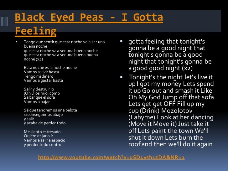 I Gotta Feeling Black Eyed Peas Lyrics - YouTube