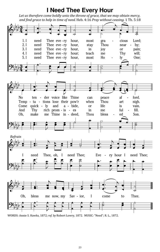Baptist Hymnal, Christian Song: I Need Thee Every Hour
