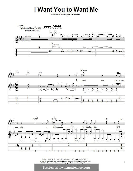 I Want You To Want Me by Cheap Trick - Guitar Lead Sheet ...