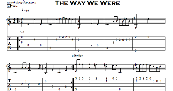 Guitar Tabs: Guitar Tabs For: The Way We Were