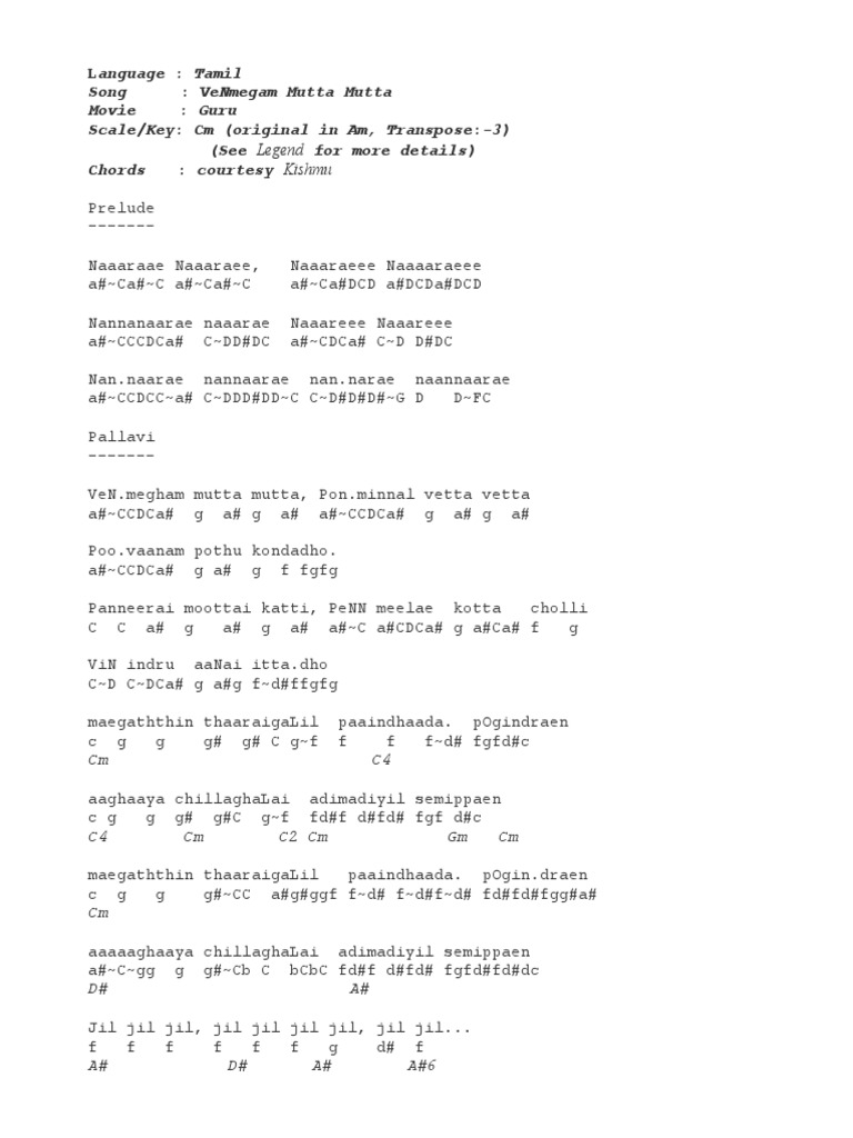 "Ilaya Nila" Sheet Music and Guitar Tabs - YouTube