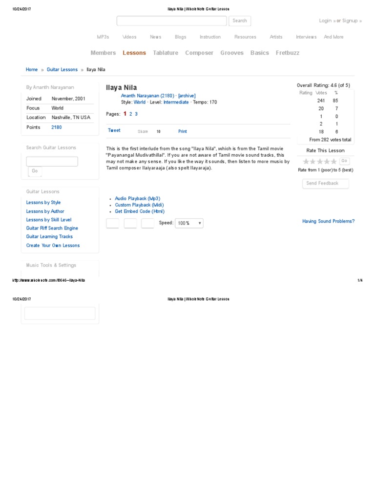 "Ilaya Nila" Sheet Music and Guitar Tabs - YouTube