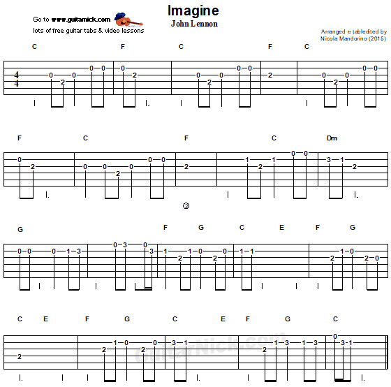 IMAGINE by John Lennon: Easy Guitar Tab - GuitarNick.com