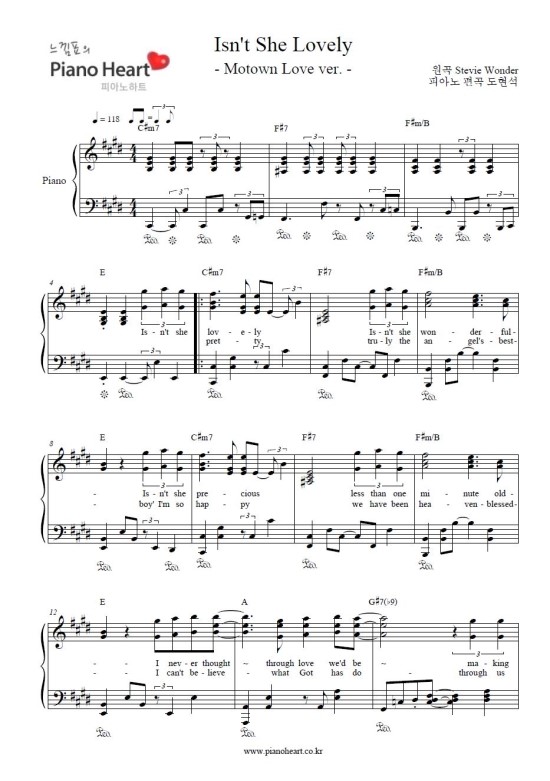 Stevie Wonder - Isn't She Lovely 악보 안내및 피아노 연주 : 네이버 블로그