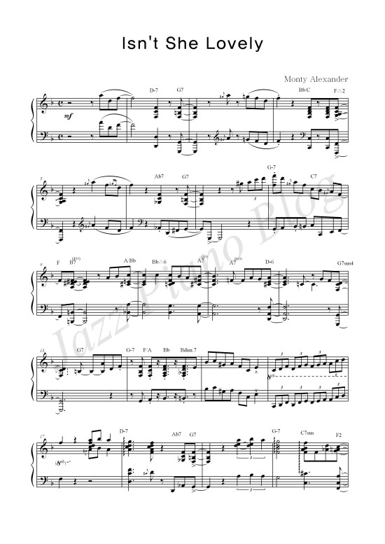 [ 재즈피아노 악보 ] Monty Alexander - Isn't She Lovely : 네이버 블로그