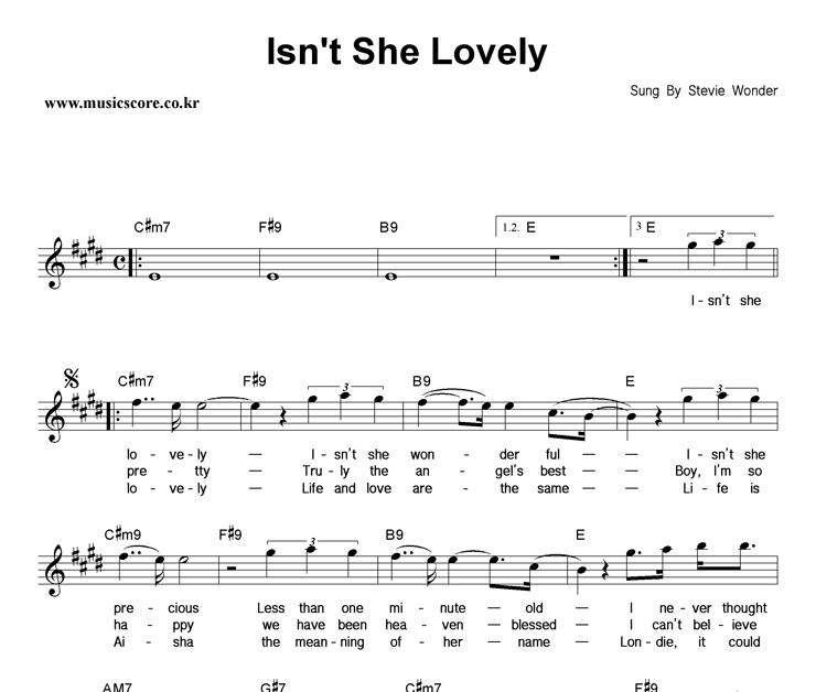 스티비원더 Isn't She Lovely 악보 업데이트 : 네이버 블로그