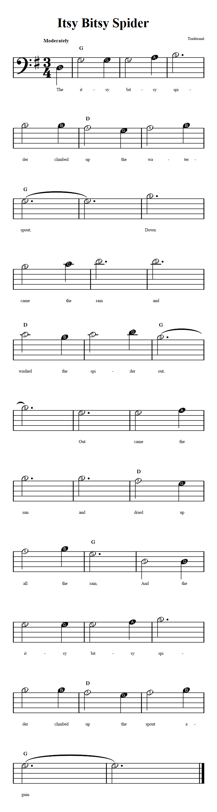 Itsy Bitsy Spider: Chords, Lyrics, and Bass Clef Sheet Music