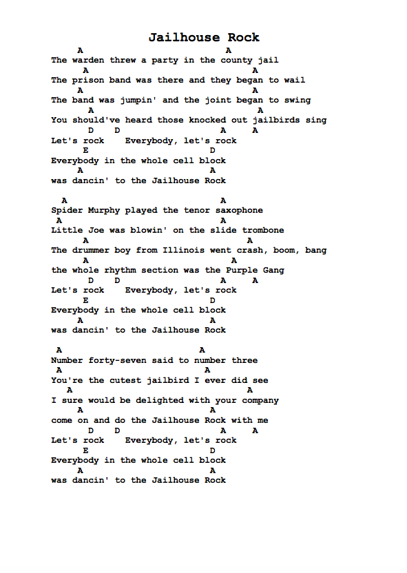 Jailhouse Rock, by Elvis Presley - lyrics and chords