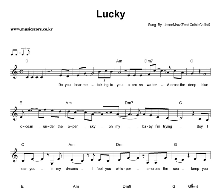 Jason Mraz Lucky 악보 업데이트 : 네이버 블로그