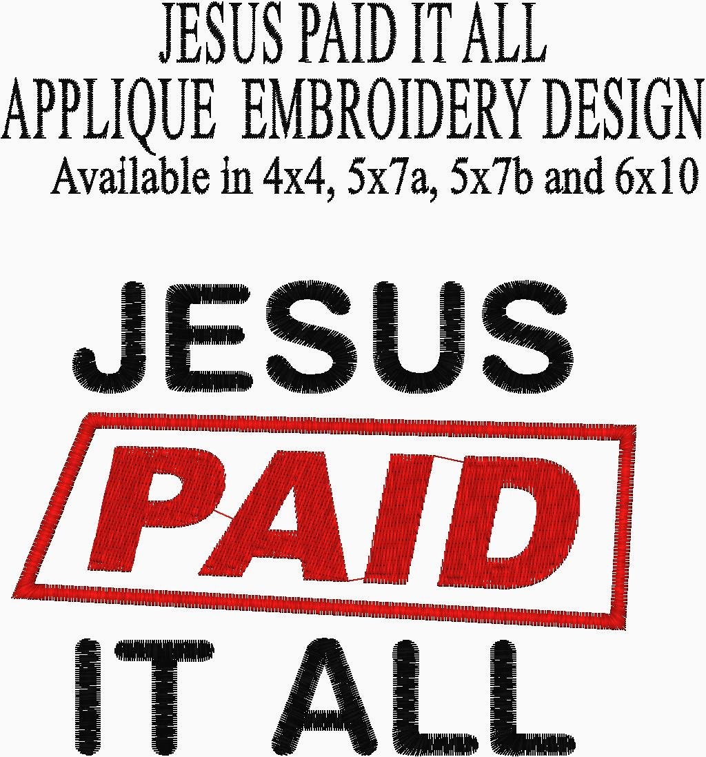 JESUS Paid It All Embroidery Design Machine Embroidery