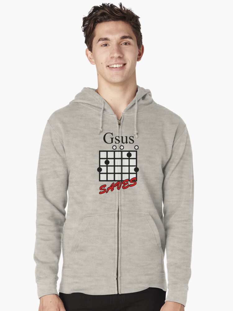 "Jesus Saves (Gsus Saves) Guitar Chord" Zipped Hoodie by