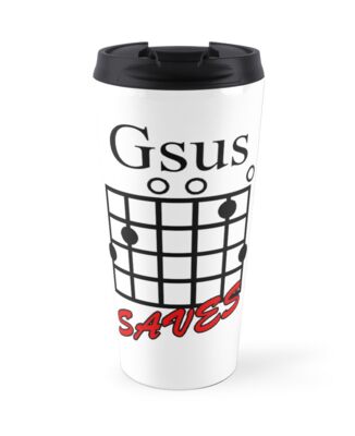 "Jesus Saves (Gsus Saves) Guitar Chord" Travel Mug by