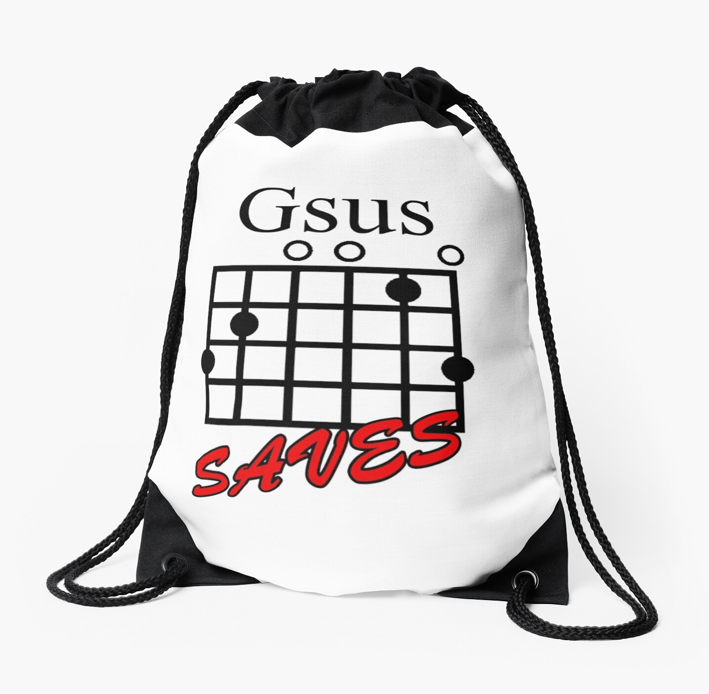 "Jesus Saves (Gsus Saves) Guitar Chord" Drawstring Bag by