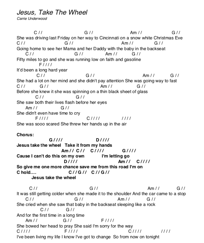 Jesus Take the Wheel - Christian Gospel Song Lyrics and Chords