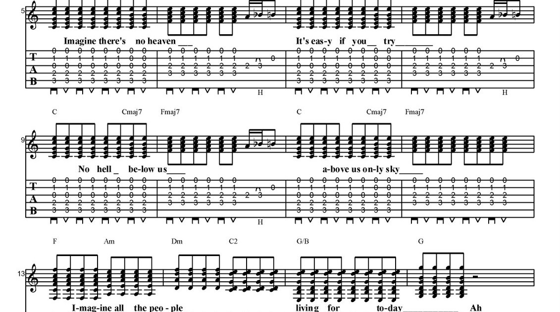 Guitar Tabs - Imagine - John Lennon Sheet Music, Chords