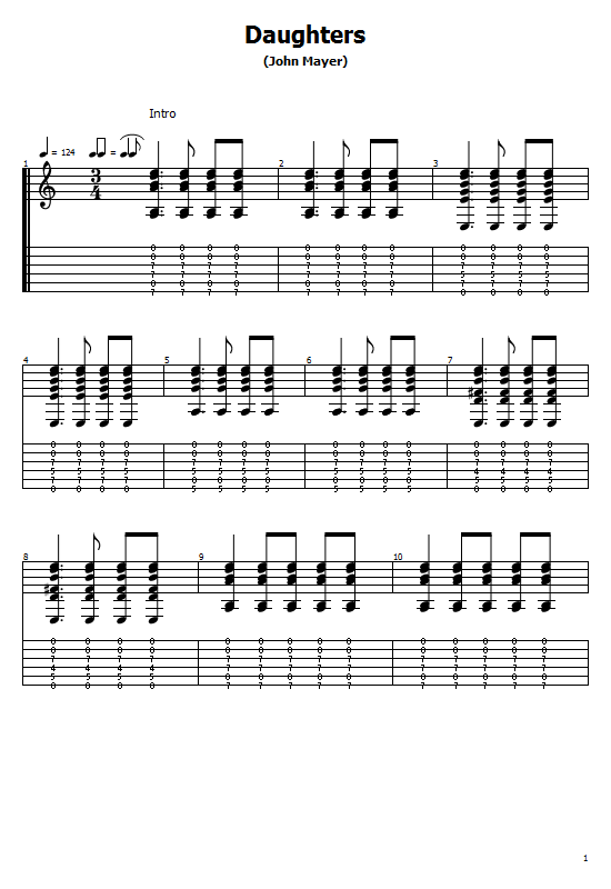 Daughters Guitar Tab and Chords - John Mayer Guitar World