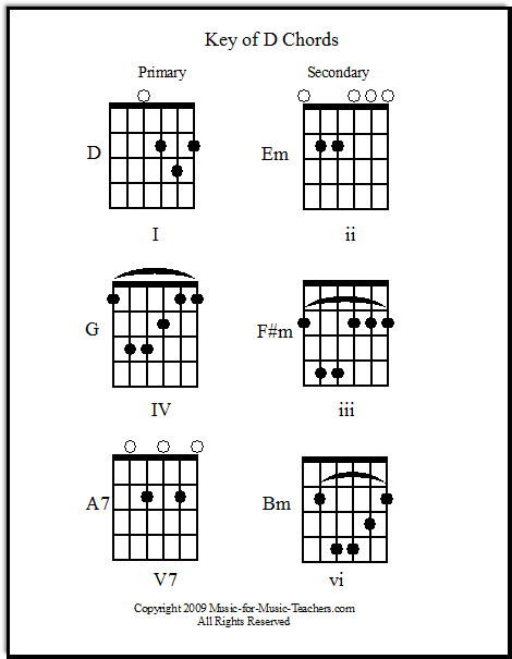 Chords in 1st position: KEY OF D | Discover Guitar Online