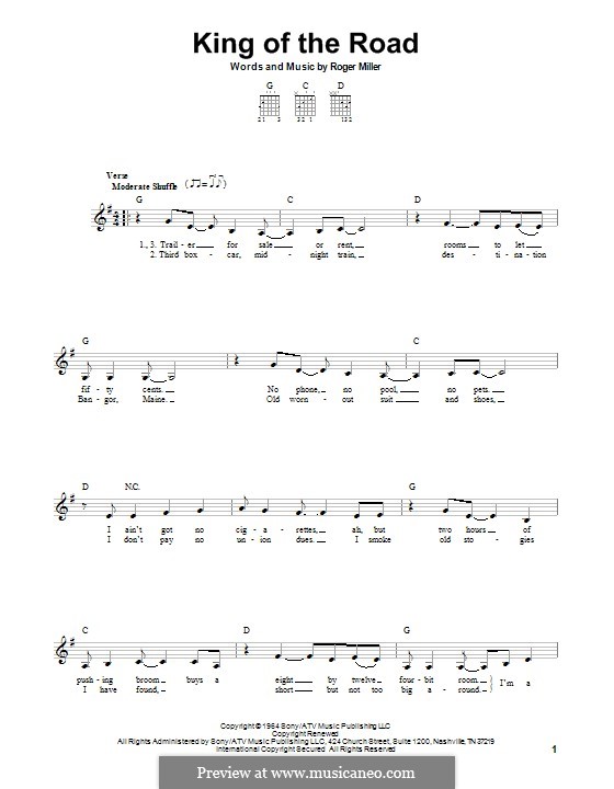 King of the Road by R. Miller - sheet music on MusicaNeo