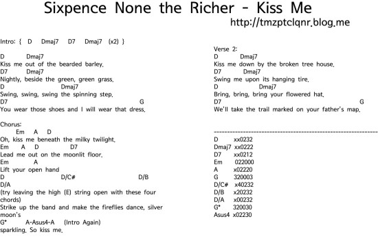 [기타 악보/다운/듣기] Sixpence None the Richer - Kiss Me : 네이버 블로그