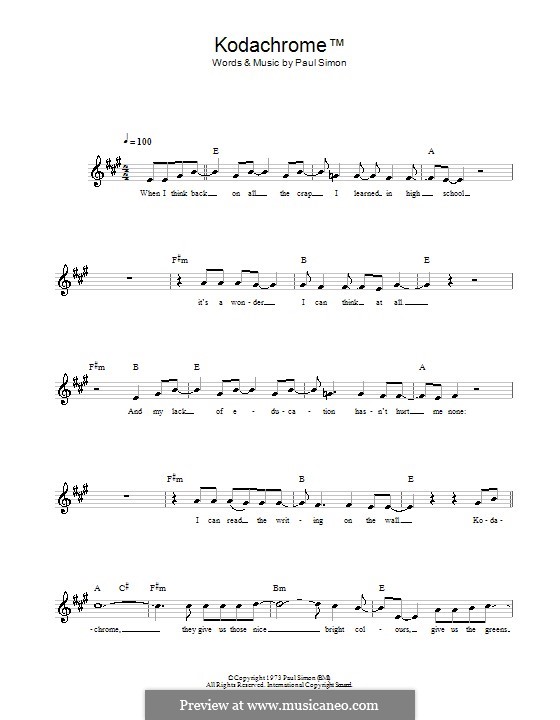 Kodachrome™ sheet music by Paul Simon (Lyrics & Piano