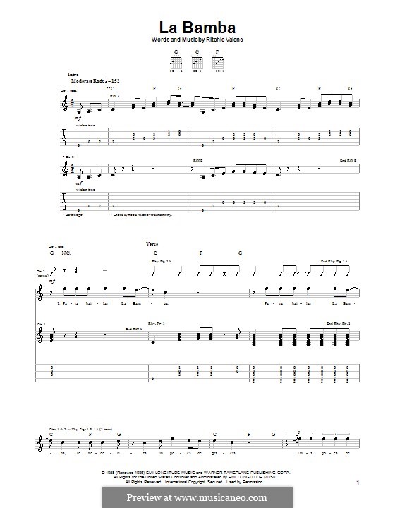 La Bamba - Guitar Chords/Lyrics | zZounds