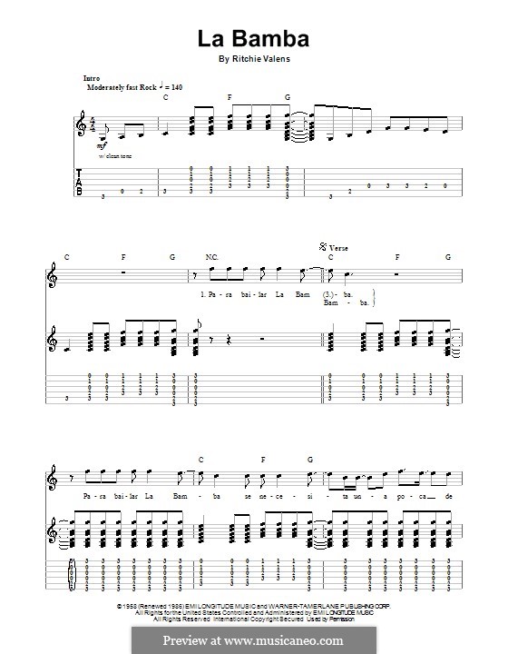 Ritchie Valens "La Bamba" Guitar Tab - Download & Print