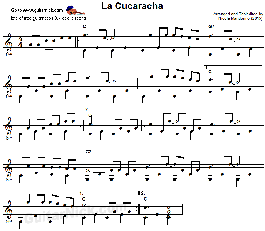 La Cucaracha - guitar tablature | Guitar tabs, Guitar