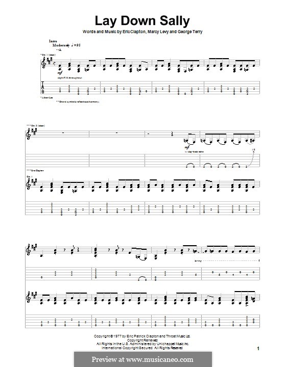 Lay Down Sally - Eric Clapton guitar tab & lyrics