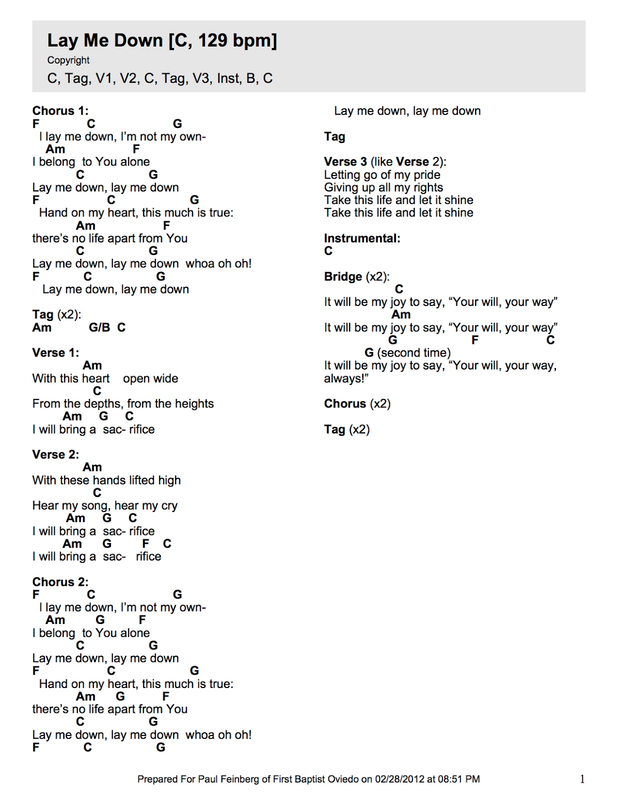Chris Tomlin - Lay Me Down (Lyrics) Chords - Chordify