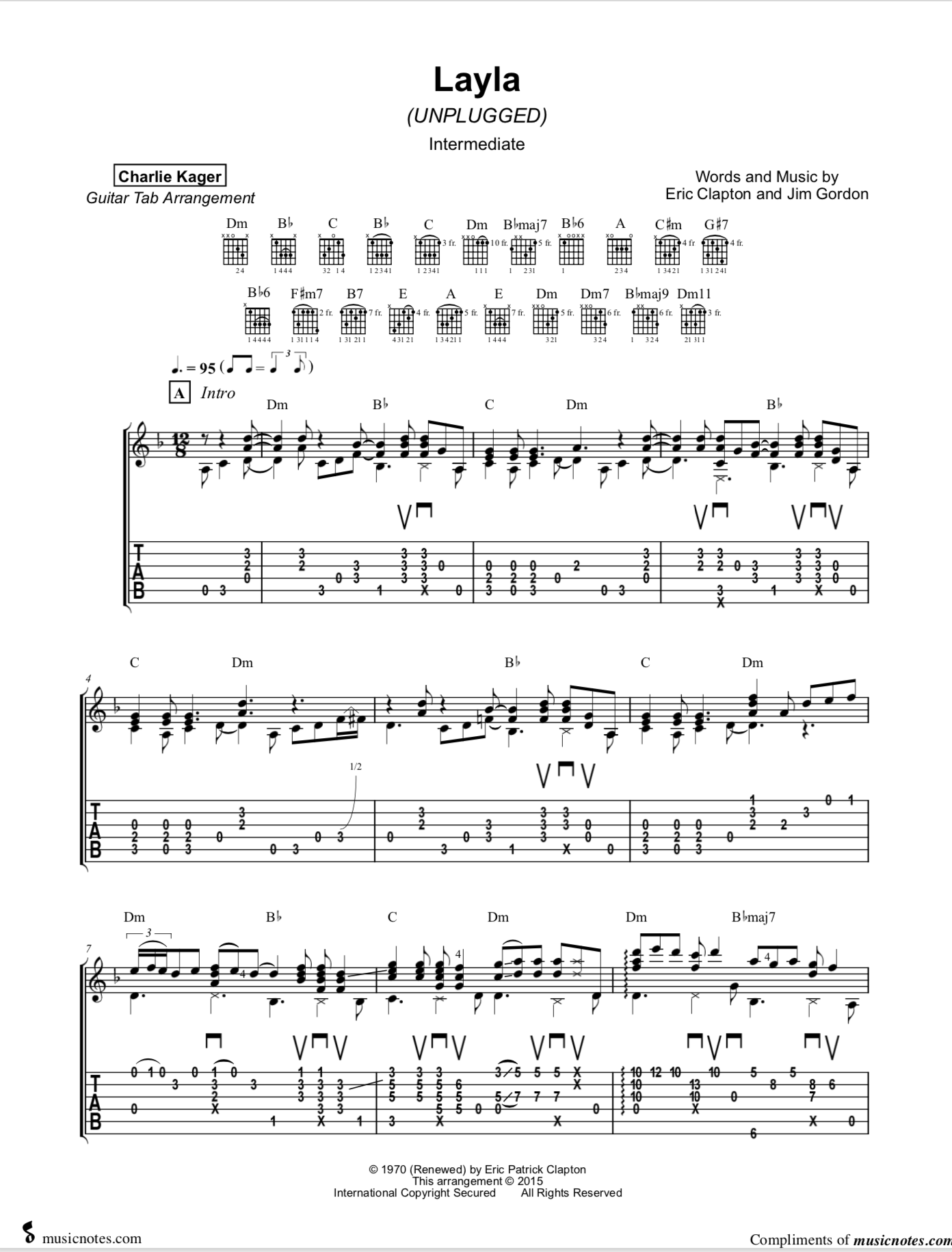 Layla - Acoustic (Unplugged) Eric Clapton - Guitar Tab