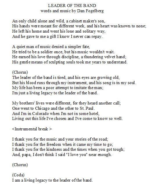 Dan Fogelberg - Leader of the Band - song lyrics music