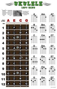 Left Handed Ukulele Fretboard Chord Chart Poster Ukelele