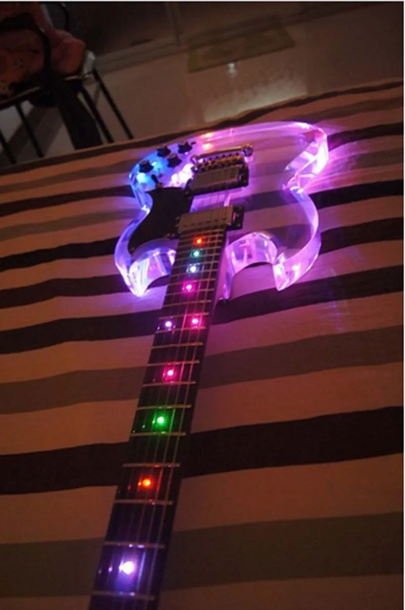 LED Light Electric Guitar Maple Acrylic Body Crystal