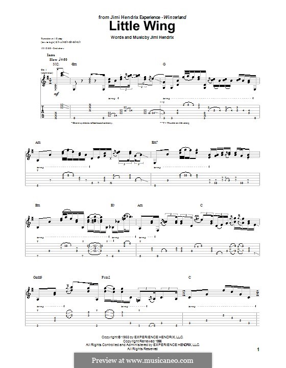 Little Wing by J. Hendrix - sheet music on MusicaNeo