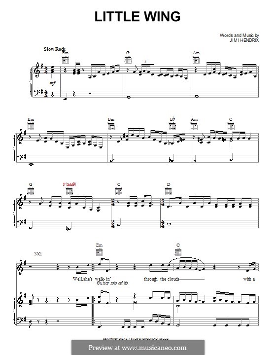 Little Wing by J. Hendrix - sheet music on MusicaNeo