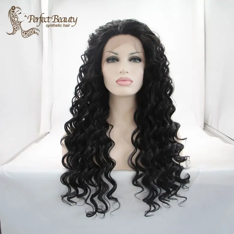 Fashion women's full wigs black curly 60cm long synthetic ...