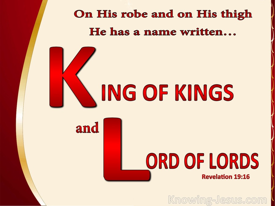 KING OF KINGS AND LORD OF LORDS." Revelation 19:16