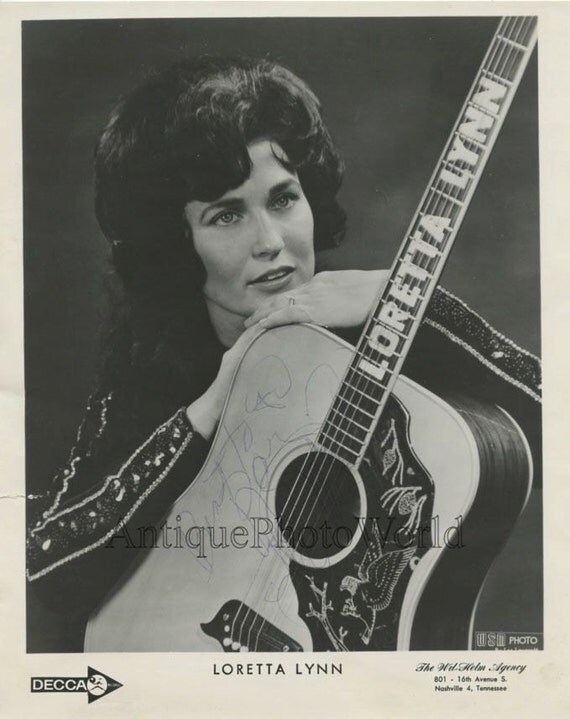 Loretta Lynn country music star w guitar vintage hand signed