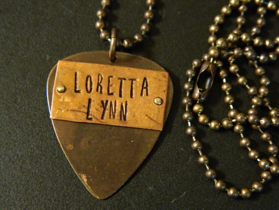 Loretta Lynn Mixed Metal Guitar Pick Pendant and Altered