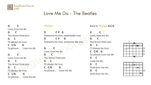 Love Me Do (Beatles) Guitar Chord Chart with Lyrics - http